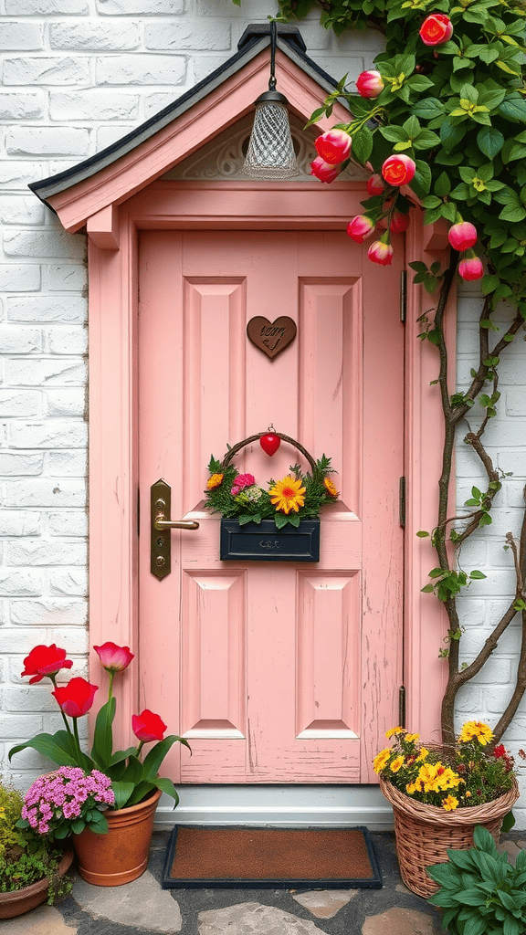 A bright pink door can instantly change the vibe of a home. It stands out beautifully against the greenery and adds personality. Don’t be afraid to use bold colors; they can create a warm and inviting entrance.